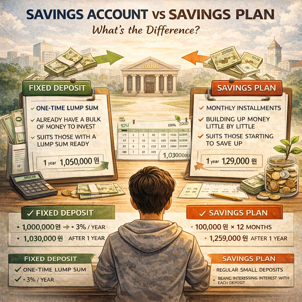 저도 처음에는 예금이든 적금이든 그냥 은행에 돈 맡기는 거라고 생각했습니다. 차이가 있다는 건 알았지만, 어느 쪽이 더 나은지 따질 생각조차 못 했습니다. 그러다가 직접 두 상품을 함께 운용해 보고 나서야 이건 단순히 이자를 비교하는 문제가 아니라는 걸 깨달았습니다. 예금과 적금은 돈을 넣는 구조 자체가 다르고, 결국 어떤 사람의 생활 방식에 맞는지도 완전히 다릅니다.